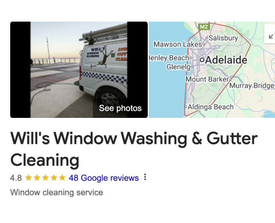Will's Window Washing & Gutter Cleaning didn't want to invest in expensive and unproven SEO and Adwords. Implementing RepFlow took them from 48 reviews to 146 and ranking #1 for 'Adelaide Window Cleaner' in the Google map-pack (above organic results) for a fraction of the cost.